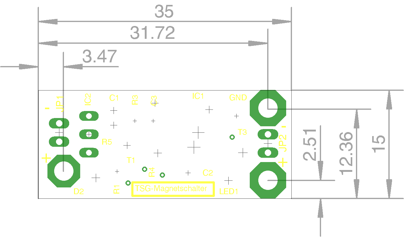 Der ElMaSch ist 35x15mm groß und kann mithilfe von drei Befestigungslöchern fixiert werden.