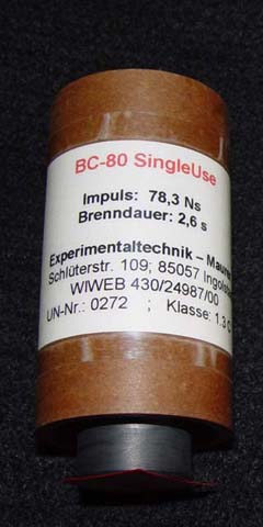 Im Raketenmodellsport nach FAI-Reglement wurde in der Klasse S1F im Jahr 2005 erstmals ein BC 80 Single Use in metallfreier Ausführung sehr erfolgreich eingesetzt.