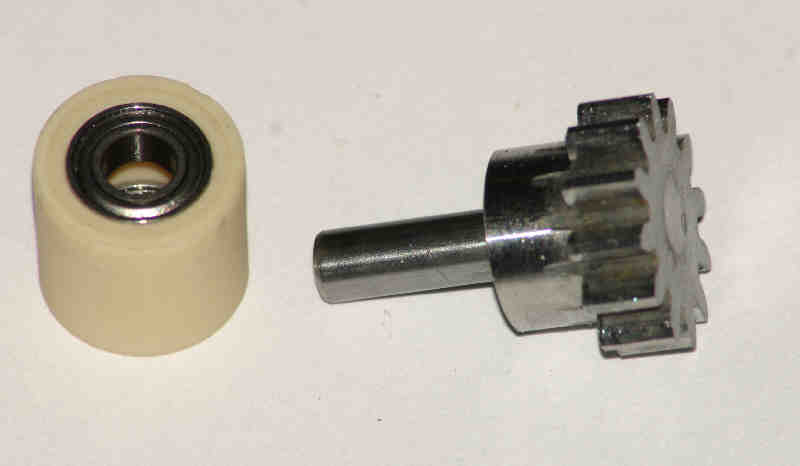 Das Ritzel, das nach dem Flug in den Zahnkranz eingreift und das Seil wieder aufspult, musste wegen der kurzen Achslänge in 2 Kugellagern gelagert werden. Am Ende der Achse ist ein Innensechskant eingearbeitet, über den von aussen dann das Ritzel und damit der Zahnkranz und die Seilspule bewegt werden.