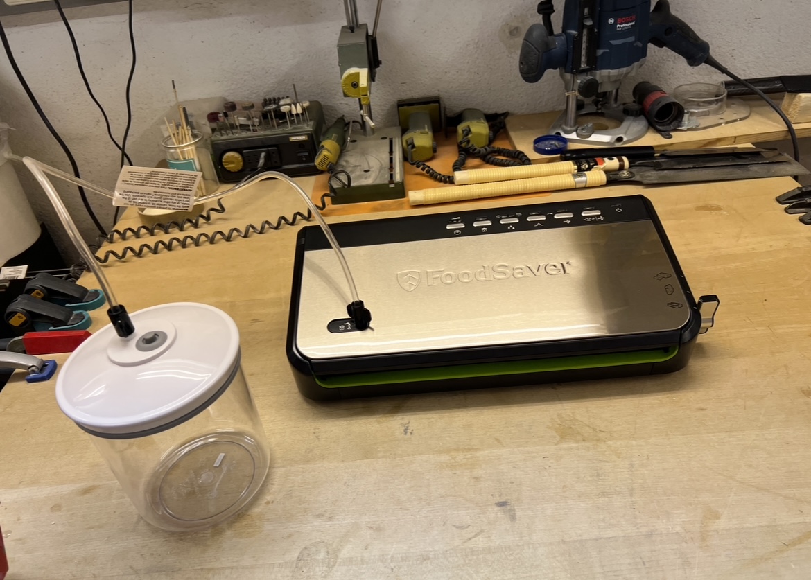 Hallo zusammen Der Weihnachtsmann hat mir meinen Wunsch erfüllt und somit ist ein kleiner Küchenhelfer im die Werkstatt eingezogen:-) ein Vakuum Beutelschweissgerät … Dies soll mich beim laminieren unterstützen und dank zusätzlichen Vakuum Behälter kann man sicherlich auch mal den einen oder anderen Flugkomputer testen … Ich bin echt begeistert von der Versrbeitung und der Vakuum Leistung …