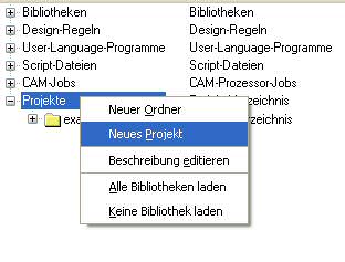 durch RECHTS-Klick auf Projekte geht das Projektmenü auf und wir wählen "Neues Projekt" !!! siehe Bild: