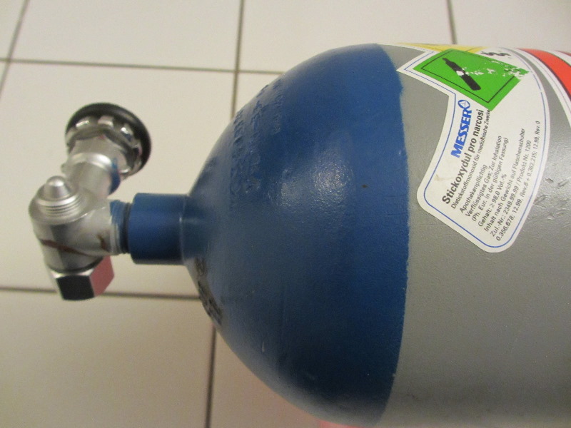Also ich verwende 2 Stück dieser aus Bundeswehrbeständen ausrangierten medizinischen N2O Flaschen von Fa. MESSER welche ab und zu mal leer bei eBay für ca. 50 Euro pro Stück zu bekommen sind...