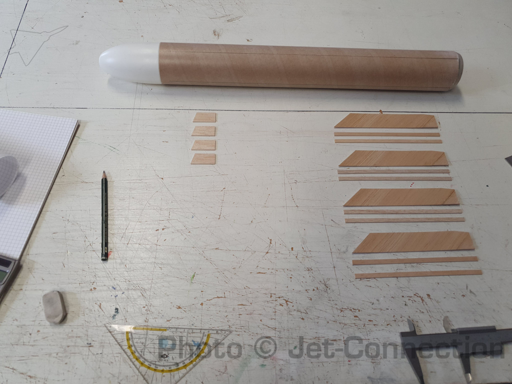 Es ging ein kleines bisschen weiter. Die Finnen sind fertig geschnitten. ich habe da ich die Brettchen sowieso zusammenleimen musste am hinteren Teil härteres Material verwendet. Der nächste Schritt wird sein die Finnen zu fillern und zu beglasen und fertig zu bauen (Verstärkungsleisten unten). Langsam wird es was. Im Moment sind die Vorbereitungen für den Trip nach England zum Modellfliegen im Vordergrund