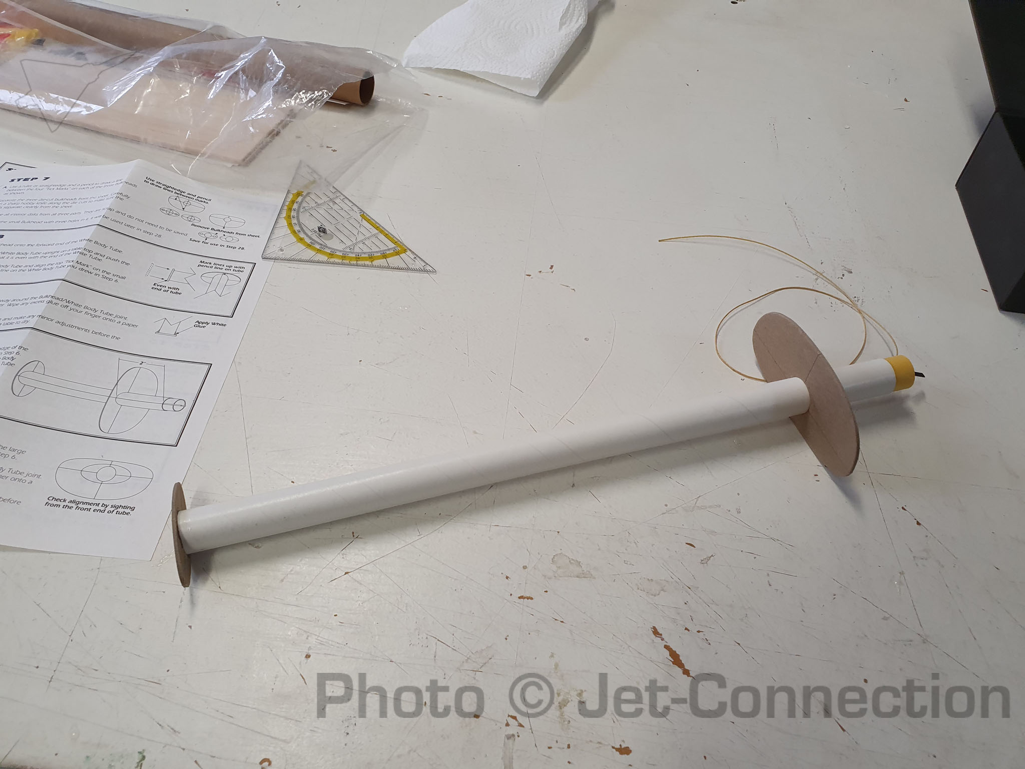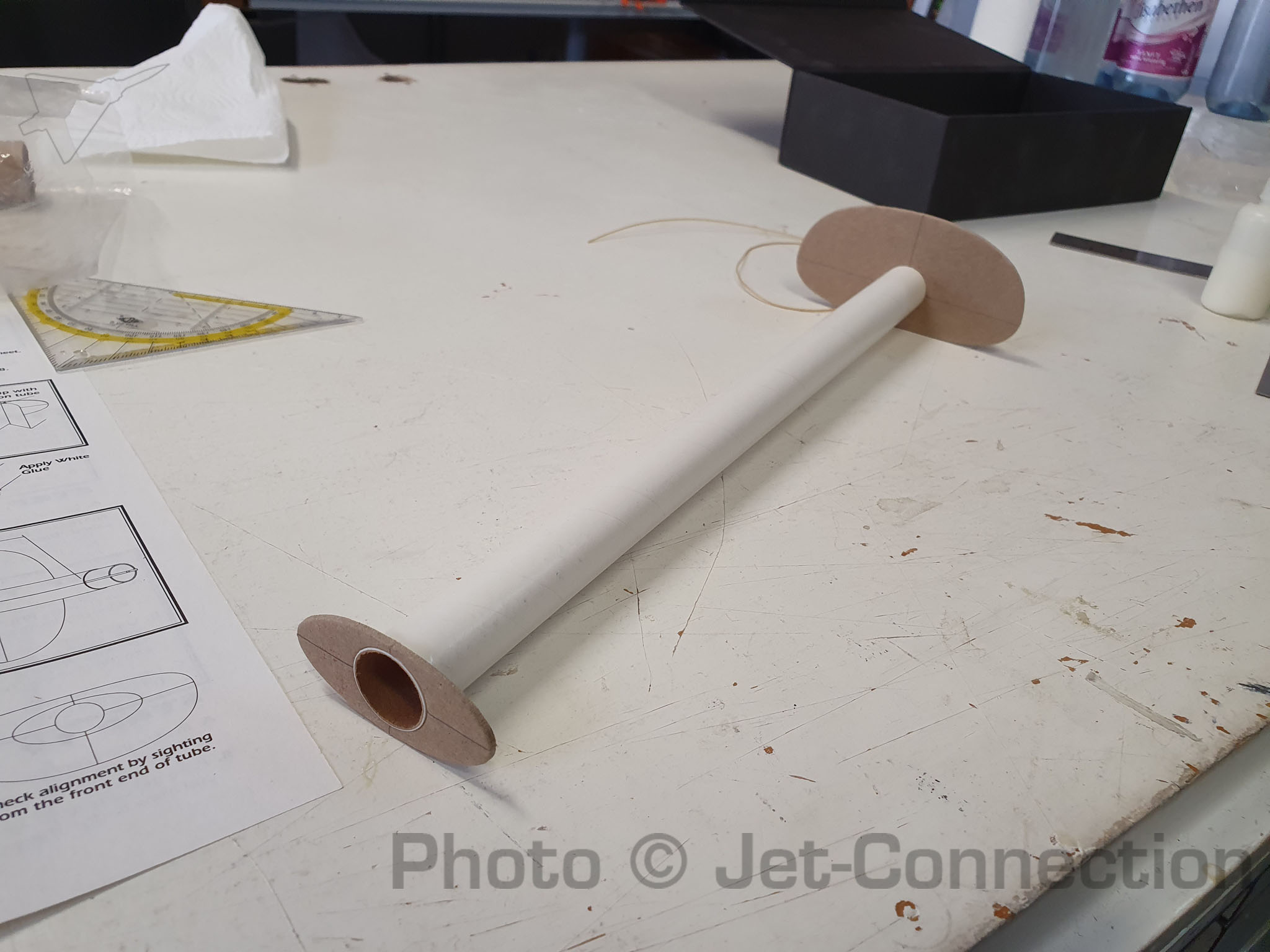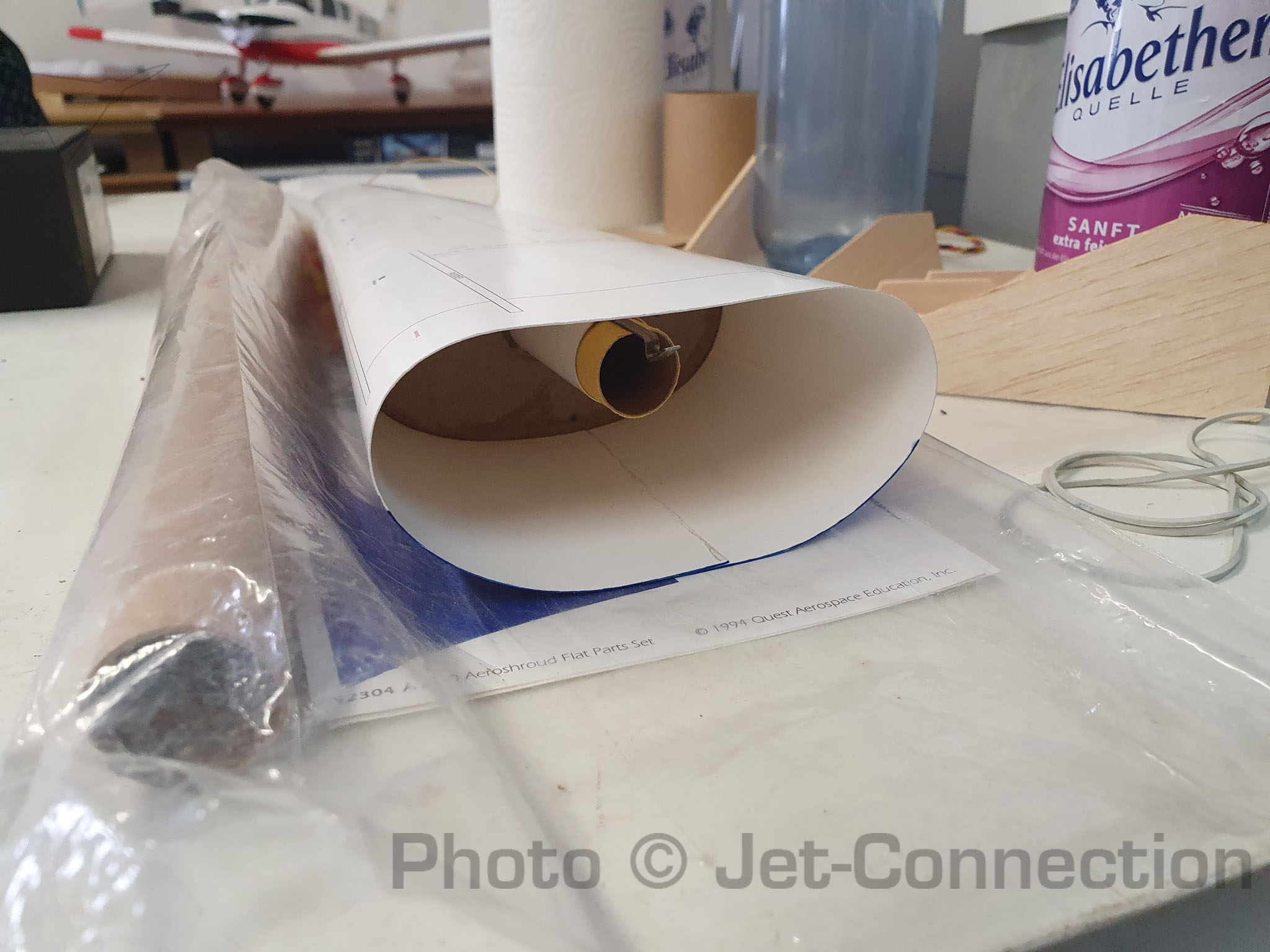 Zwei Spanten auf der Hauptröhre ergeben nachher dann den Sitz für die Aussenhülle die aus vorgedrucktem Karton besteht: