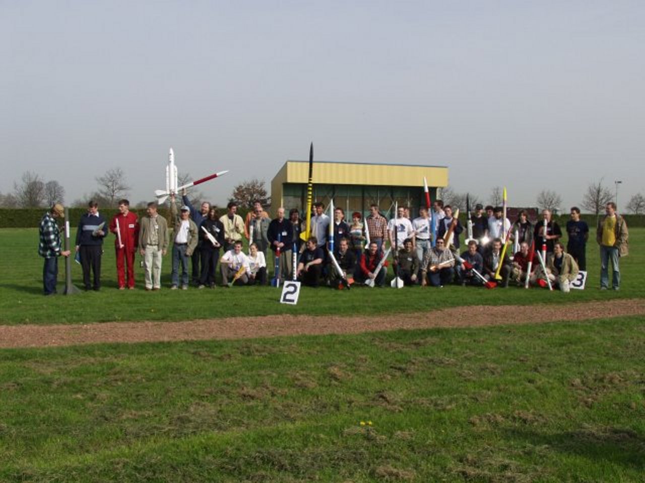 Hallo Ralf, da hast du absolut Recht, das kleine Modell stammt aus einer "Sonderedition" für den NRT-1 im Frühjahr 2003, im ehemaligen Atomkraftwerk Kalkar (nie in Betrieb gegangen). Organisiert wurde das Event damals von Rainer Lesar und als Ehrengast war der deutsche Astronaut Thomas Reiter vor Ort und er hat damals sogar den Startknopf gedrückt, für den gleichzeitigen Start von 300 Raketen dieser Bauart... Der Start hat wunderbar funktioniert und kam meines Wissens sogar in Guinness Buch der Rekorde 2003. Nur die Landung der 300 Modelle war, sagen wir mal "sportlich".... Hier mal noch ein Foto von der Raketenfliegertruppe von damals vor Ort.... Stefan steht da übrigens auf der linken Seite (der sechste von links) mit der großen weiß-roten Rakete quer, hinter Rolli mit seiner Ariane! Astronaut Thomas Reiter ist der 4. von links! Andreas