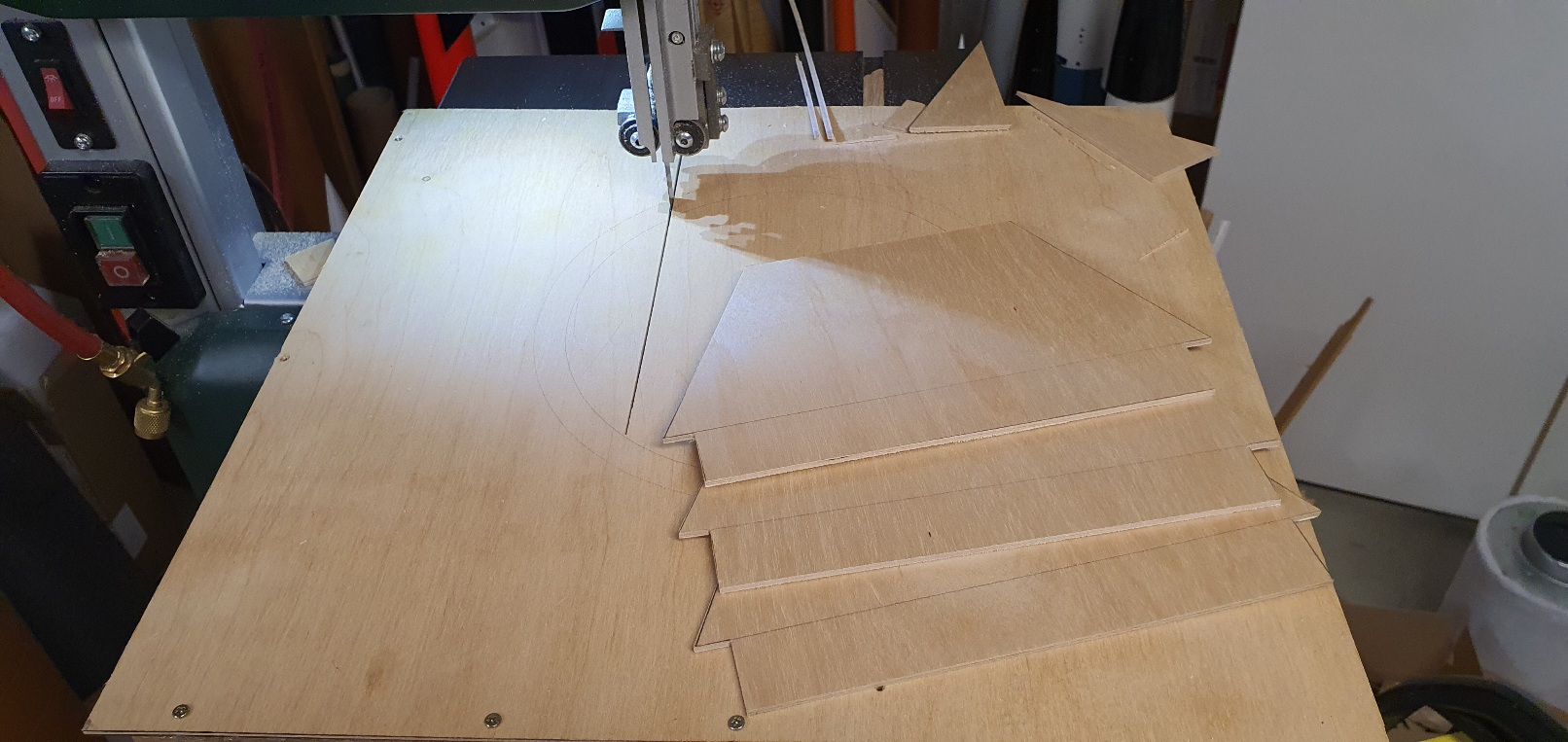 Es geht weiter. Die Flossen werden aus verglasten Sperrholz gebaut.