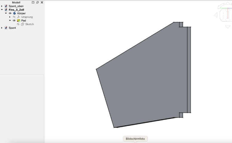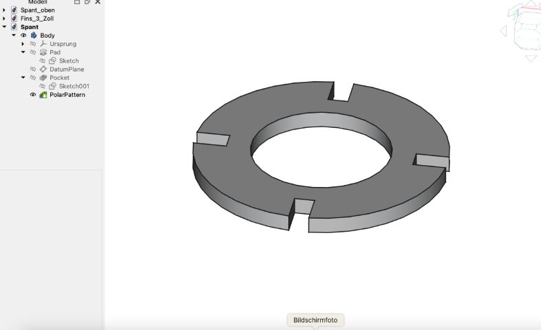 Da mir nur ein 3 Zoll Rohr mit Kuppler und Spitze zur Verfügung stand, ein Downscale der LOC 4" Gobin gestartet. Spanten und Finnen mit FreeCad konstruiert, um sie mit meiner kleinen Chinafräse zu fräsen.