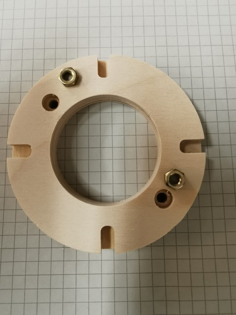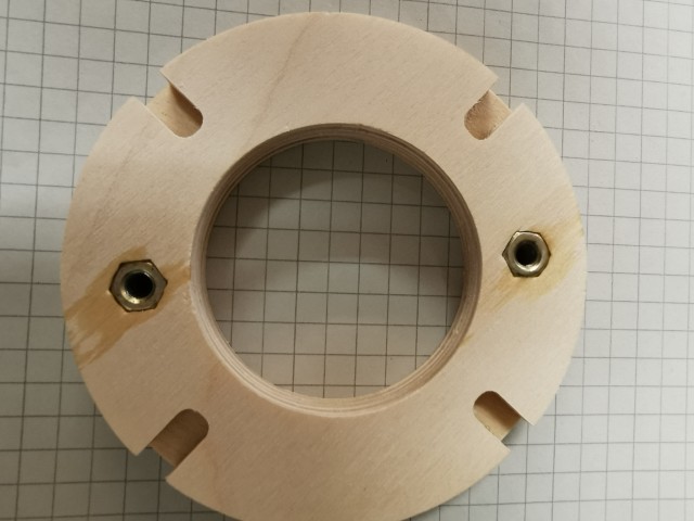 Muttern für Motorhalterung eingepresst. Hält besser als Einschlagmuttern, und ist einfacher zu machen. Eingepresst mit Schraube und großer Unterlegscheibe. kurz vor dem einpressen mit Schraube einen Tropfen Sekunderkleber an den Rand der Mutter.