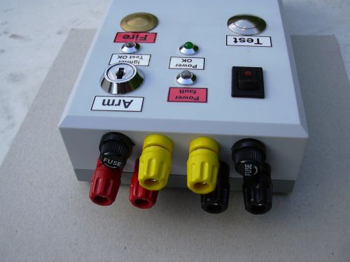 Aber erstmal zum Istzustand. Mein Zündgerät ist komplett in einem Handgehäuse eingebaut, der Akku ist extern und steht dann auf der Wiese, das Zündkabel ist ein 2,5 mm2 Kabel alle externen Verbindungen werden über farblich kodierte Bananenstecker hergestellt. Sicherungen sind die normalen Feinsicherungen.