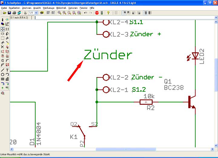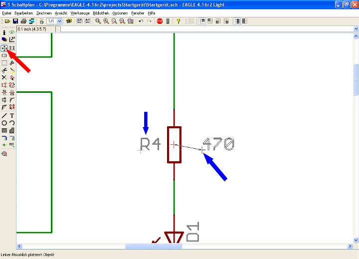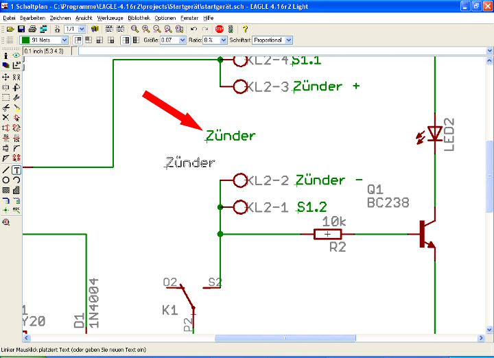 Noch ein kleiner Kniff beim platzieren von Text !! Es gibt ein Standartraster im Schaltplaneditor von Eagle d.h.