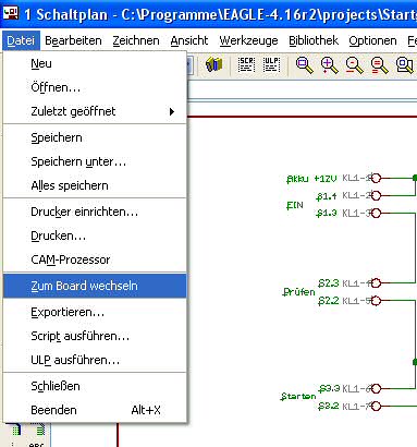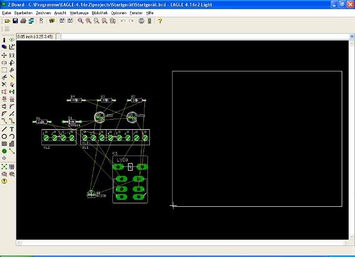 In Eagle nennt sich das Board (Dateiendung *.brd) und dies kann sehr einfach aus dem Schaltplan erzeugt werden. Man geht einfach beim Schaltplaneditor auf Datei-->Zum Board wechseln