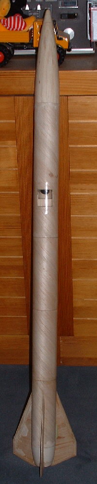 Hi, lange ist es her wo ich angefangen habe die Rakete zu bauen. Noch viel länger die Idee. Jetzt aber habe ich die Rakete vor mir liegen und habe mal gleich einpaar Bilder gemacht. Also die Rakete soll Videoaufnahmen während des Fluges machen und diese gleich zur Erde senden. Das ganze habe ich mit einem Kameramodul von Conrad realisiert und einem kleinen Videosender. Keine PenCam. Da ich kein T2-Schein habe, mußte alles so leicht sein, das ein D-Motor die Rakete sicher antreiben kann. Die Rakete an sich habe ich schon mal erfolgreich testen können beim "Zweiten Kölschen Raketenseminar". Hier kam leider nicht der Fallschirm, so das eine neue Spitze her mußte. Jetzt mit Kamera und Sender ist die Rakete nur 15g schwerer geworden. Zur SIcherheit werde ich eine zweite Austoßlandung noch per TinyTimer einbauen bevor die Rakete dann ihren ersten Kameraflug machen wird. Hier also die Rakete: Folgende Datei wurde angehängt: