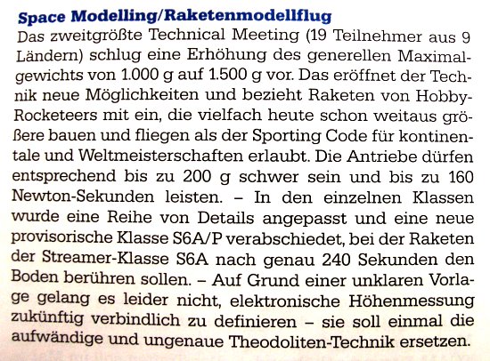 Zum Thema Änderungen im Sport gibt es auf der Seite vom RMC „Juri Gagarin“ Berlin eine Übersicht über Vorschläge zur Regeländerungen welche bei der FAI diskutiert werden.