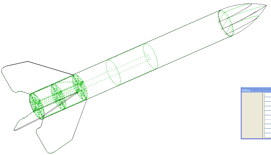 Plan ist: Erst die Spitze trennen, an der ist ein Rohr befestigt, in dem der Fallschirm steckt. Dieser wird dann nach der Trennung ausgeworfen. Der Schirm passt mit Nomex-tuch genau in eine Chips-Dose.