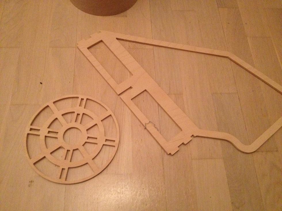 Die Spanten und Finnen werden CNC-gefräst. Es werden einige Löcher eingebracht um Gewicht im Heck zu sparen, die Finnen haben unten und oben Stege, die in die Spanten greifen. Das macht zum einen die Ausrichtung und den Zusammenbau wesentlich einfacher. Zudem bringt es Stabilität.