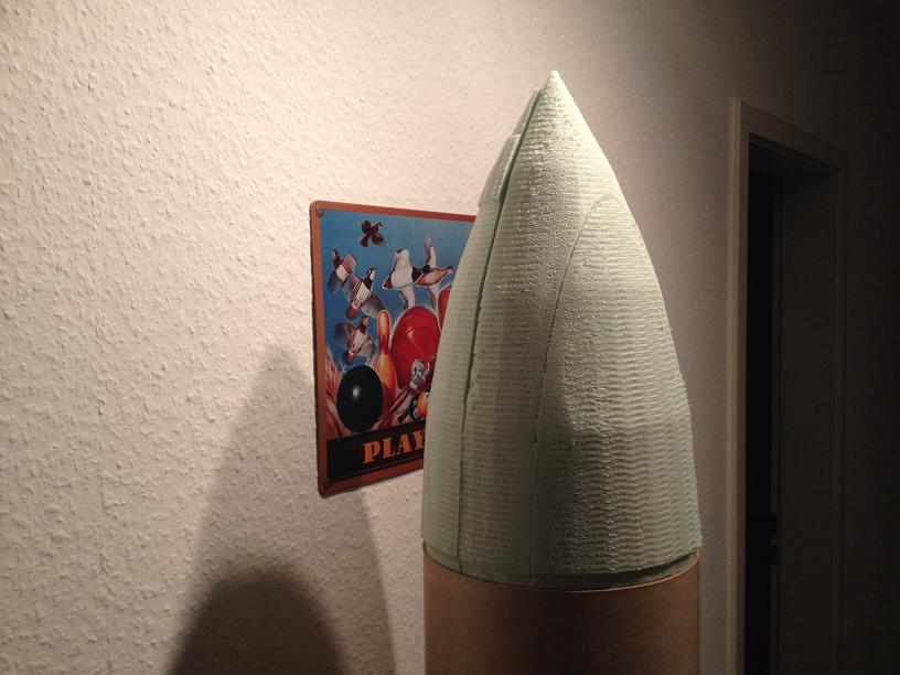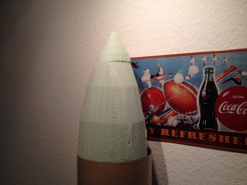 Die Spitze ist dann später teilbar, evtl. kommt die Elektronik auch noch rein. Dann gehen unten nur noch die Zünderanschlüsse raus.