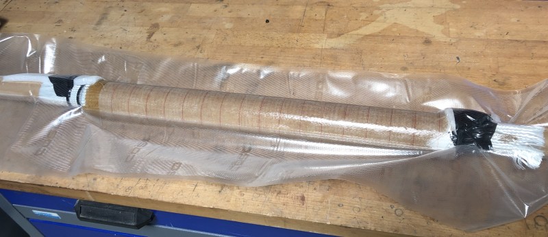 Das Motorrohr ist ein 54m PML-Rohr, das wurde noch mit 370g-Gewebeschlauch verstärkt und vakuumiert.