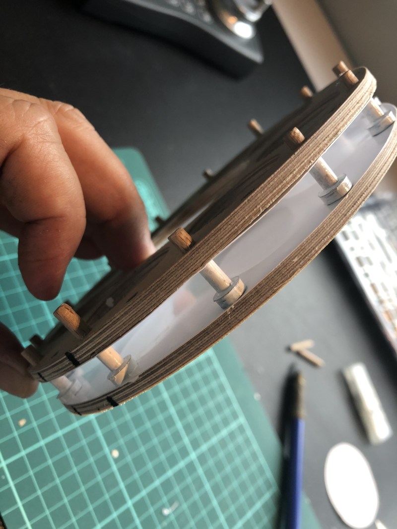 Die Trennstelle wird nachher noch mit 4mm Holzstiften verbunden damit alles stabil wird. Da kommen noch Ringe drauf, wie beim Original. Ist also noch nicht 100% fertig dargestellt.