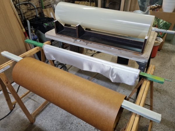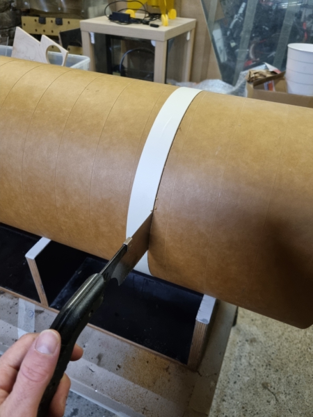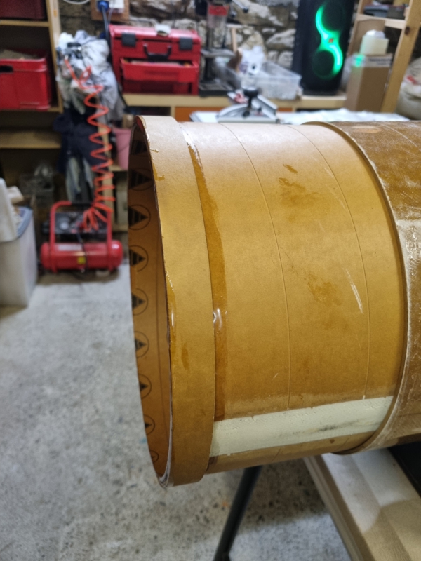 Ich umwickel das Rohr am Schluss mit 350 um Mylar von Dupont, was ich als Rollenware kaufe. Das Zeug ist sehr fest und bringt eine eigene Rundung mit. Dann zieh ich das ganze mit ner breiten Kelle mehrfach in Wickelrichtung glatt und "spanne" mit viel Klebeband.