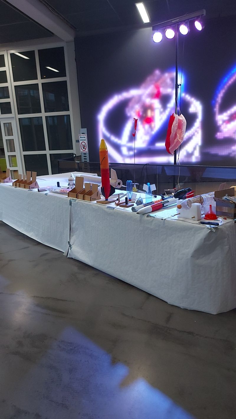 - einfache Wasserraketen bauen (damit wir nicht alle Flaschen dafür stellen müssen, kann man ja versuchen, die Besucher ihre auf der Messe gekauften Kunststoff-Flaschen zu recyclieren), ist aber sicher betreuungsintensiver (2 Personen mind.)