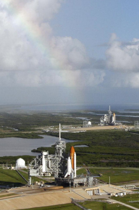 Moin! Ein schönes Bild mit Seltenheitswert vom Cape: Atlantis/STS-125 auf Pad 39A und Endeavour/STS-400 auf Pad 39B (die eventuelle Rettunsmission für STS-125, die hoffentlich nicht notwendig sein wird) Gruß Robert