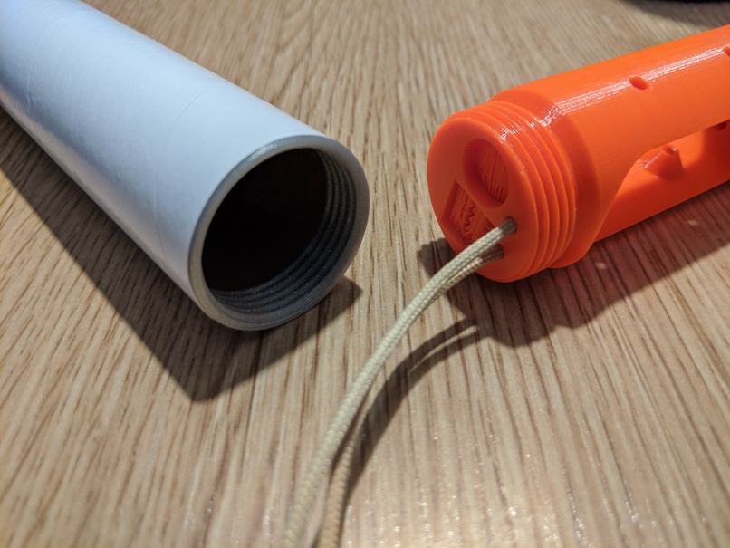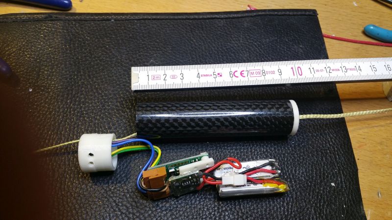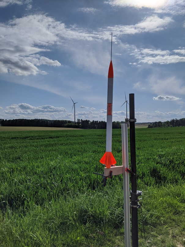 Ich hab mir auch ein kleines Model gedruckt. Heck, Ebay und Spitze kommen aus dem 3D-Drucker. Die Rohre lassen sich mit gedruckten Gewinden auf die Ebay aufschrauben. Beim Heck hab ich den Kuppler leider etwas zu kurz designed weshalb ich ihn mit einem Einsatz verlängert habe. In der Ebay findet gerade so der Lipo, DIY-Drehschalter und einer meiner Altimeter, welcher sich um die zweistufige Bergung kümmert, Platz.    Erstflug erfolgte heute erfolgreich, bei schönstem Raketenwetter, mit einem D9 auf ca. 300 Meter. VG Tom
