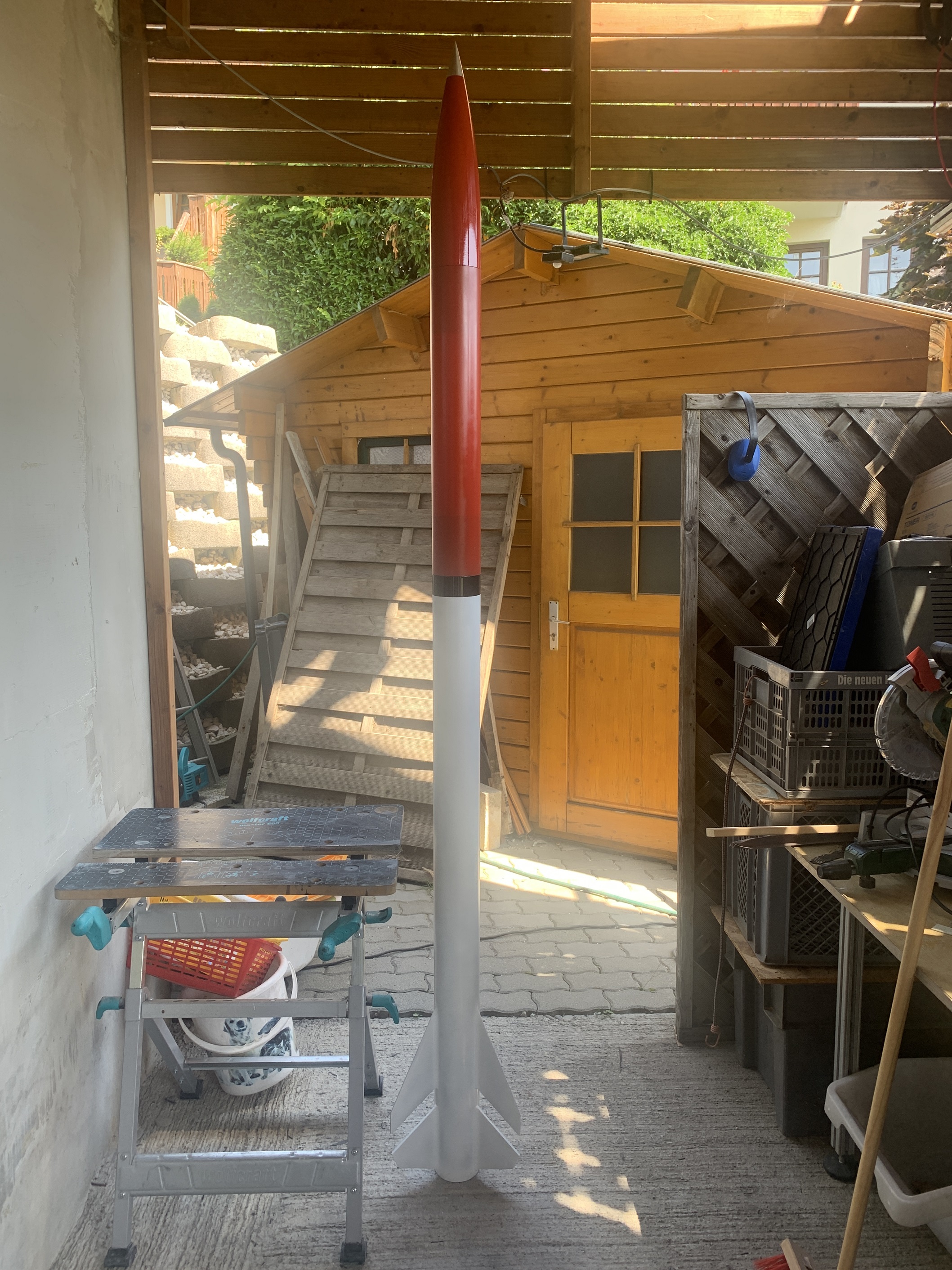 Ich hatte eine ähnlich große Rakete dabei, war etwas challenging sie so zu konstruieren, dass sie in eine normalformatige Kiste passte zusammen mit meinen Klamotten. Ach ja und angemeldet hatte ich sie vorab auch bei der Fluggesellschaft. Hat auf dem Hin-Flug auch gut geklappt, aber auf dem Rückflug war sie nicht angemeldet und ich sah mich am Flughafen plötzlich von 3 Angestellten "umringt". Hat sich aber schnell und freundlich geklärt und ich war froh, dass man mich befragt hat und der Angestellte am Röntgenscanner nicht einfach mein Gepäck und mich aussortiert hat....