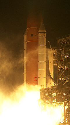 Noch ein kleiner Nachtrag vom Start am Sonntagabend: An den Aussentank des Shuttles klammerte sich beim Start (siehe roter Kreis)... ...eine Fledermaus! Ob die sich wohl bis zum MECO festgehalten hat! Naja, jedenfalls wahr´s der schnellste Flug ihres Lebens. Gruß Robert Geändert von robby2001 am 18. März 2009 um 20:50 |