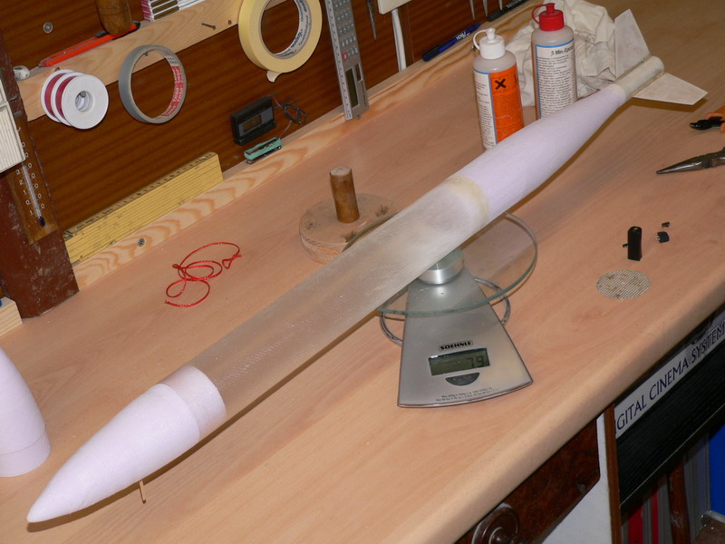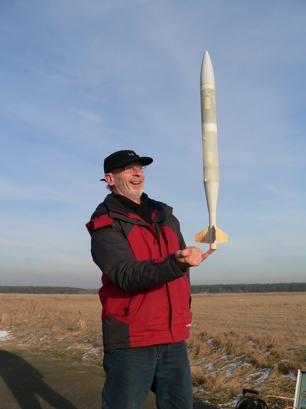 Nein, habe noch keinen Minisalt... Aber ich war schon zufrieden, dass sie schön gerade flog. Ausstoß kam am Apogäum nach 3sek. (Motorausstoß) Nach meiner Schätzung war sie aber höchstens 100m hoch. Abfluggewicht betrug 200g Mein neuester Bau bringt 80g auf die Waage, inklusive Schockband und Strömer. Fehlt noch Motor und Salt-Ausstoßsystem. Damit liege ich rein gewichtsmäßig schon im Konkurenzbereich...