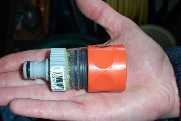 Die Zugleine kann man dann ja an einem Ring mit Hacken befestigen um den Gardenaanschluß wechselweise zu benutzen.