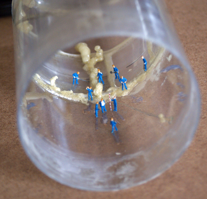 Aktuell werden in dem Drucktank überstehende Klebereste entfernt.