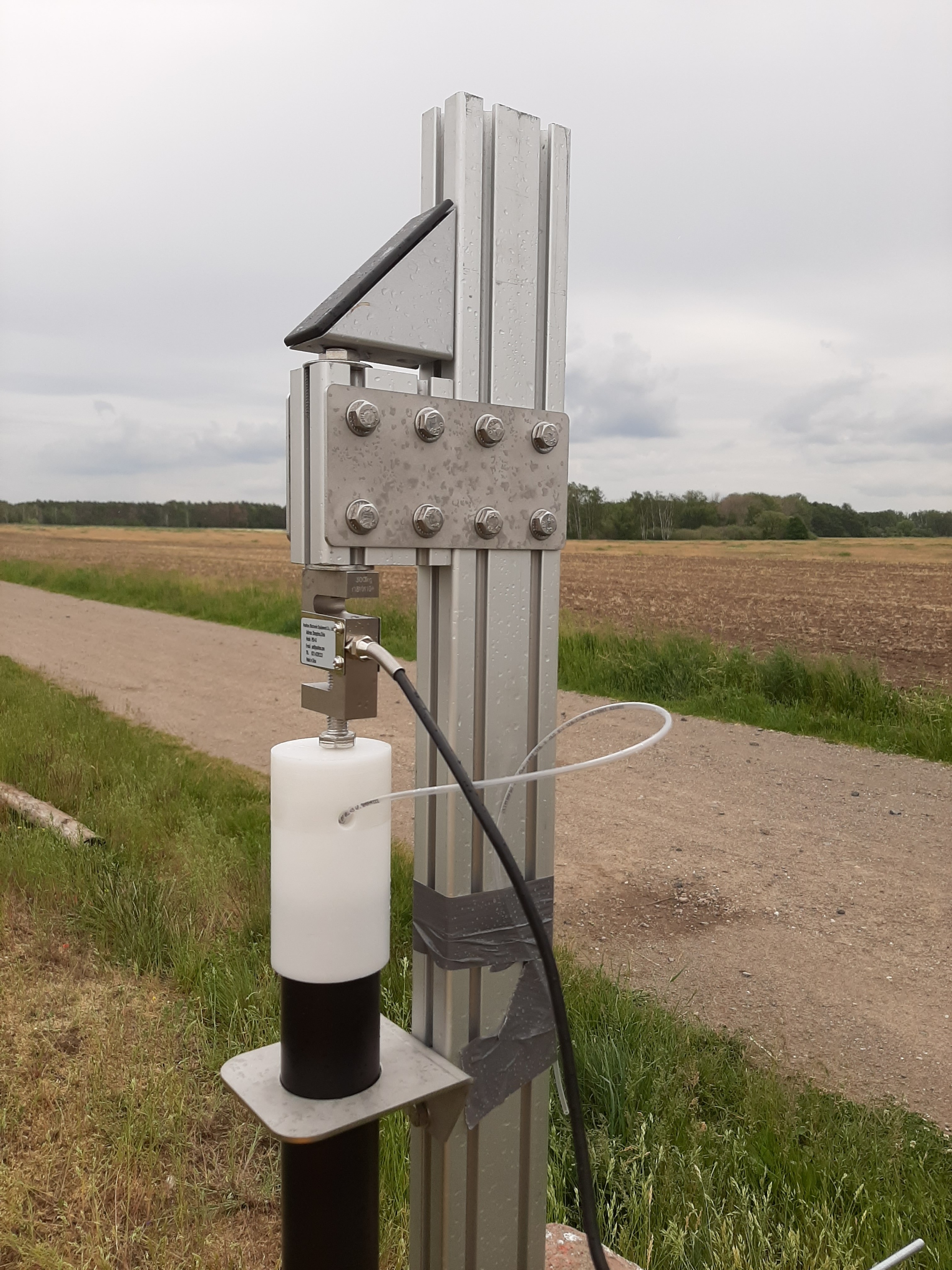 Hier mal unser Versuchsaufbau für den großen Prüfstand. Wir haben ja auf der Roten Jahne unsere Betonsäule, wo wir auch mal Motoren größer I-Impuls sicher am Prüfstand dran hängen können...