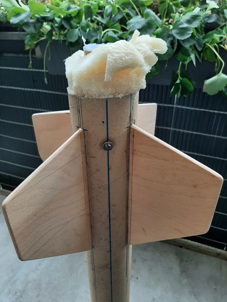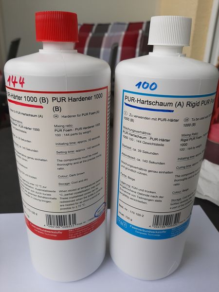 Ich habe mir angewöhnt, die Hecksektionen meiner Modelle, wegen der höheren Stabilität, prinzipiell mit 2K PUR-Schaum auszuschäumen und habe damit sehr gute Erfahrungen gesammelt. Aber Achtung, die Verarbeitungszeit des Schaums beträgt nur 39 Sekunden ! Das erfordert schon etwas Übung und Schnelligkeit....