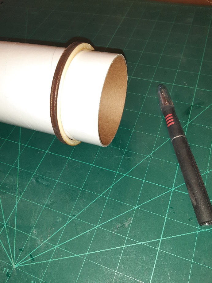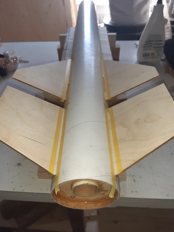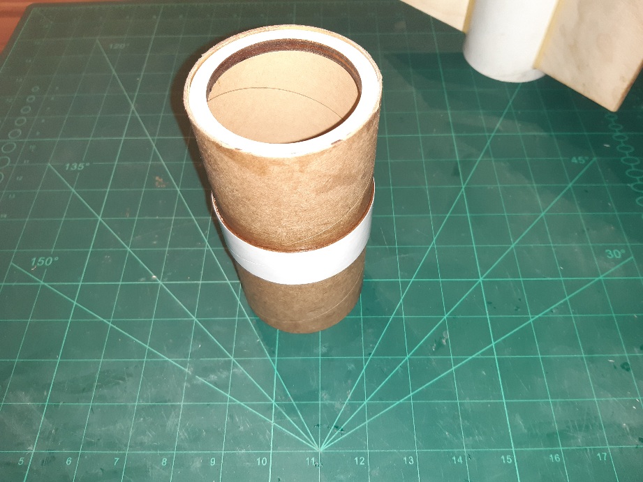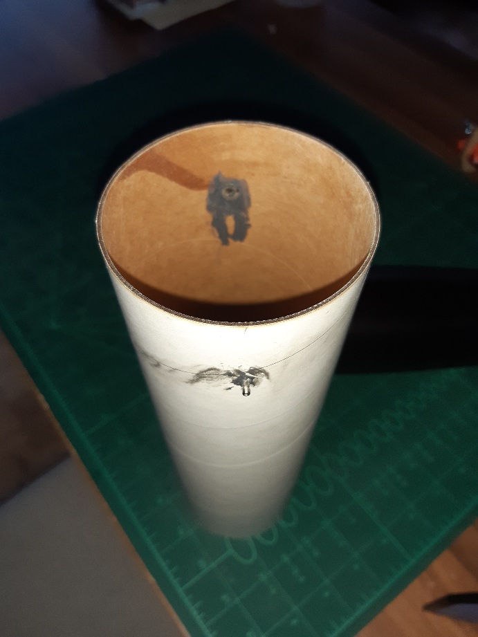 Heute hatte ich grad mal wieder etwas Zeit zum Basteln. Da ich die Rakete auch für DualDeployment vorbereiten will, habe ich vom Körperrohr ein 3cm Stück abgeschnitten. Dazu habe ich einen Holzring als Führung genommen und dann mit dem Scalpel in mehreren Runden abgeschnitten. Dann das Stück mittig auf den Koppler und Stützringe in den Koppler geklebt. Morgen geht's weiter wenn der Kleber getrocknet ist.
