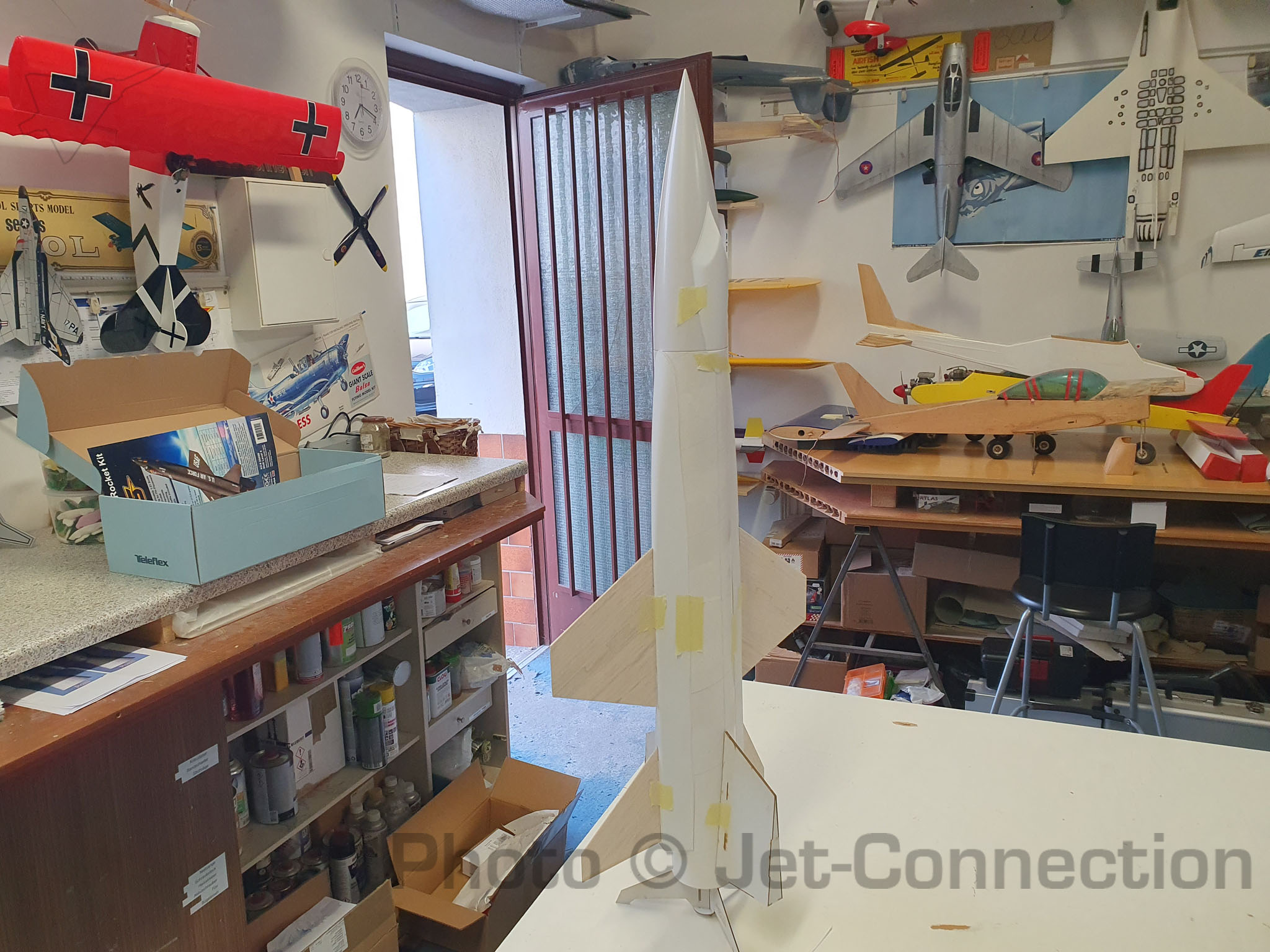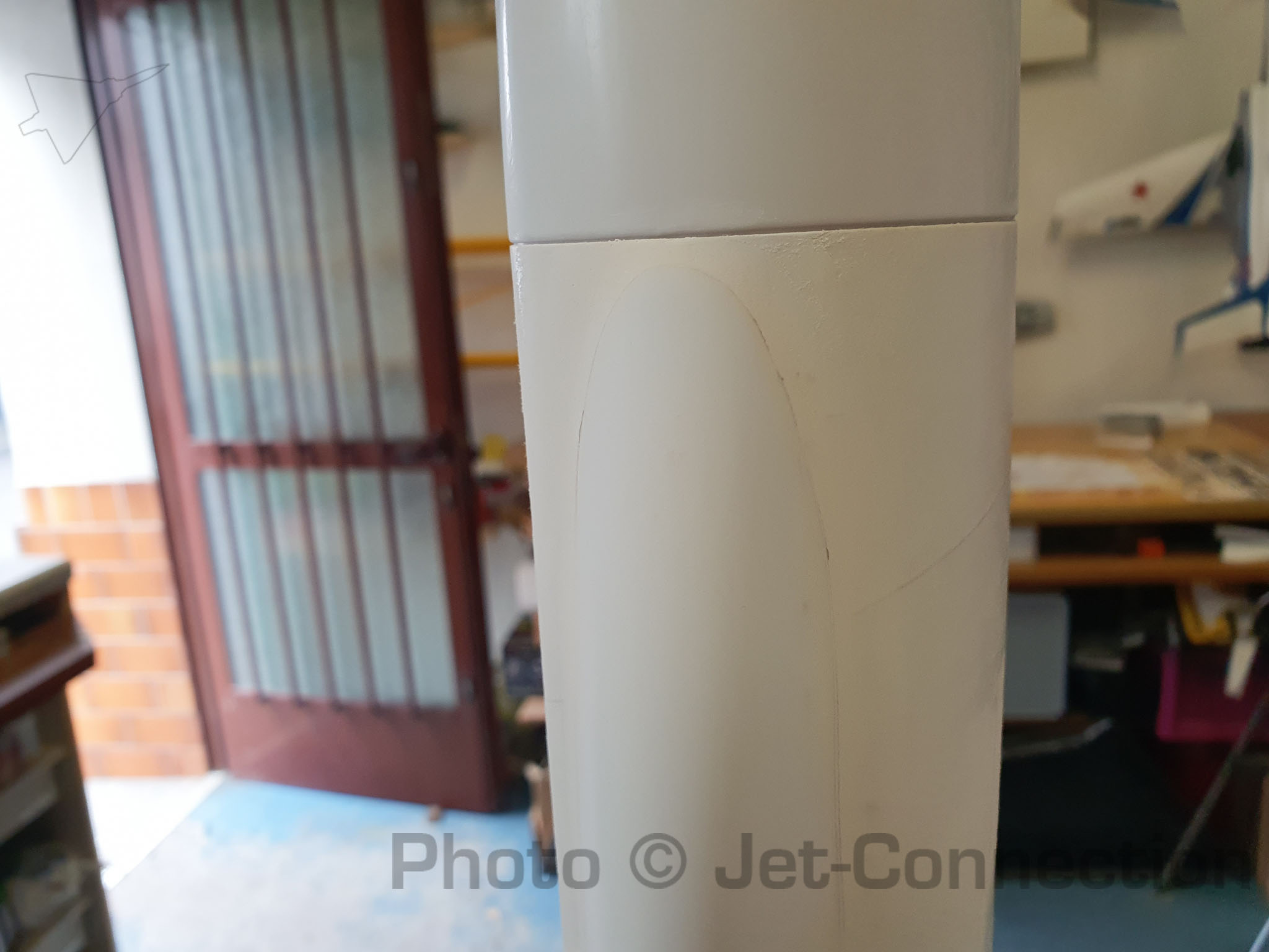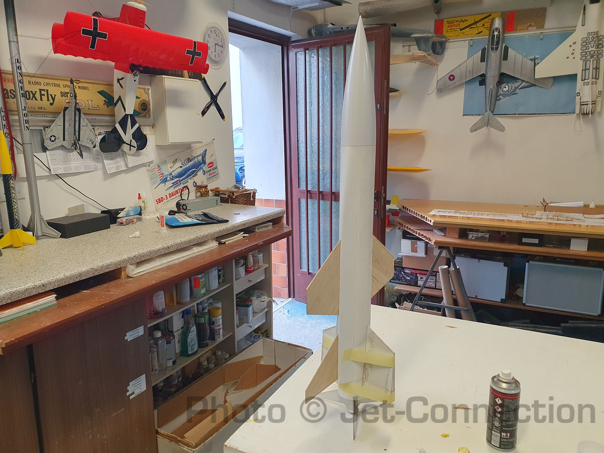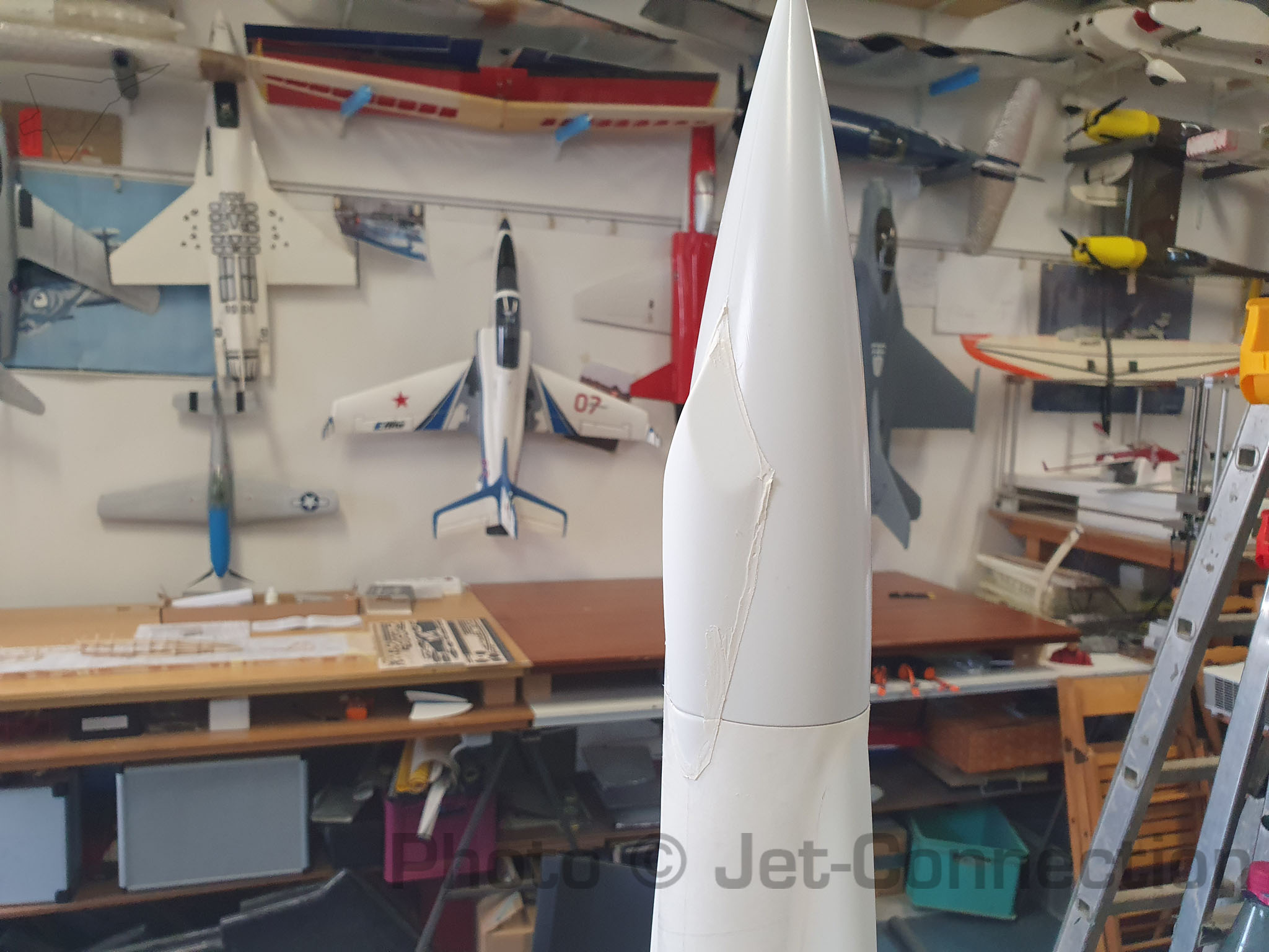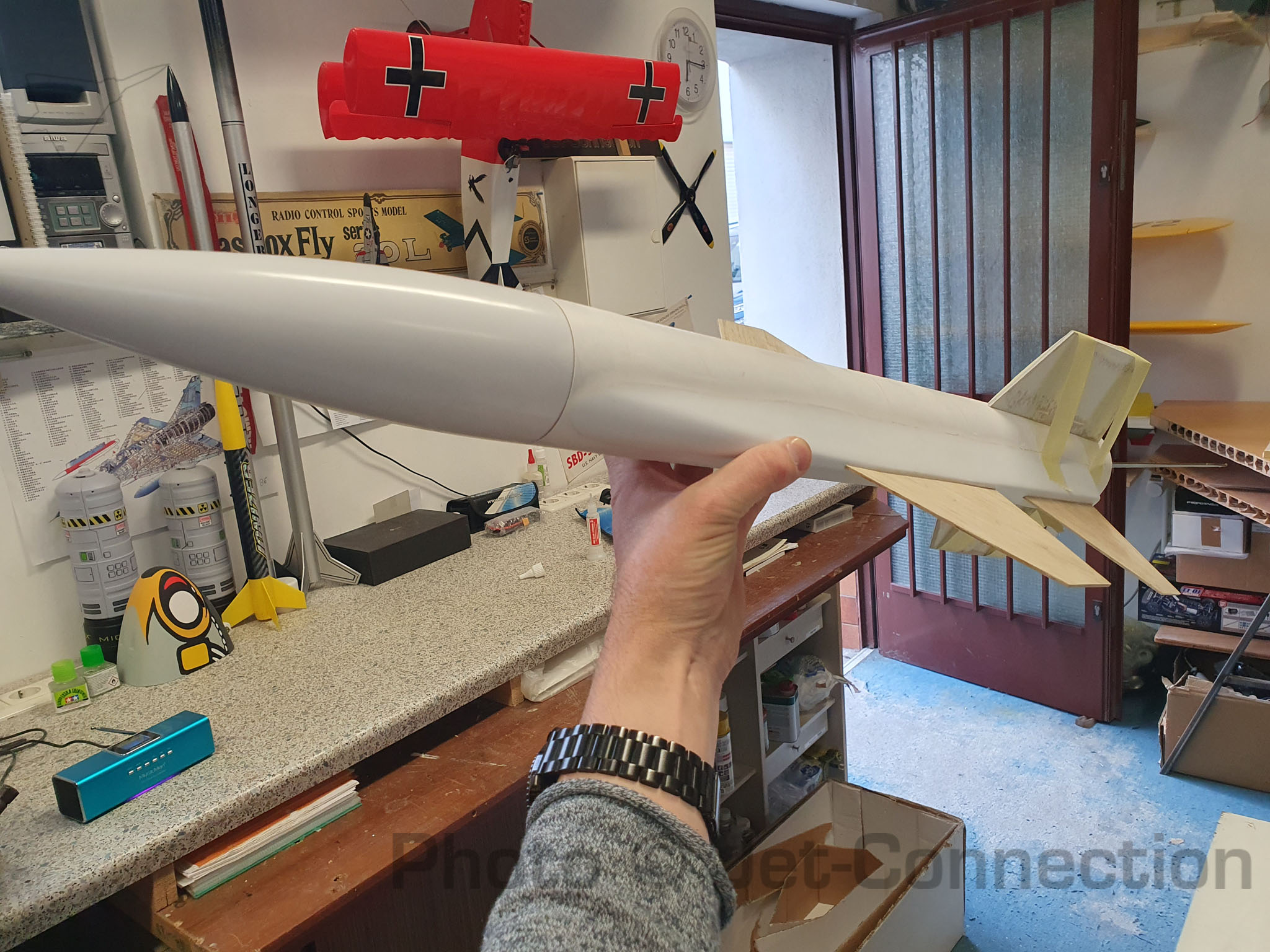 Und weiter gehts. Die Seitenflossen sind montiert und auch das Cockpit ist an seinem Platz samt dem ersten Durchgang Spachtel.  Ich werde wohl ein wenig Porenfüller brauchen um einige Bereiche des Körperrohres und der Finnen zu behandeln da teilweise leicht durchgeschliffen wurde. Sollte aber kein Problem sein. Die Stabilität ist ja weiter gegeben. Als Vorbereitung für das fillern und lackieren sollte das allemal ausreichen. Stand der Dinge jetzt: