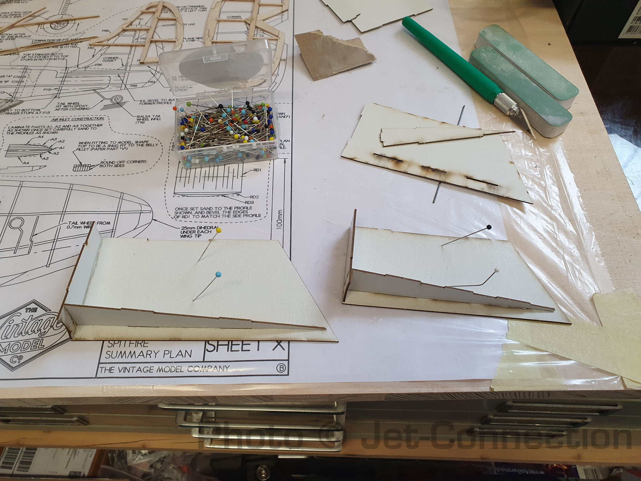 Und so schaut das Ganze dann zusammengesetzt aus: Ein bisschen warping hat die eine Tragfläche noch, das bekomme ich aber hoffentlich noch heraus. Ein bisschen warm angefönt und biegen sollte helfen. Schaun wir mal