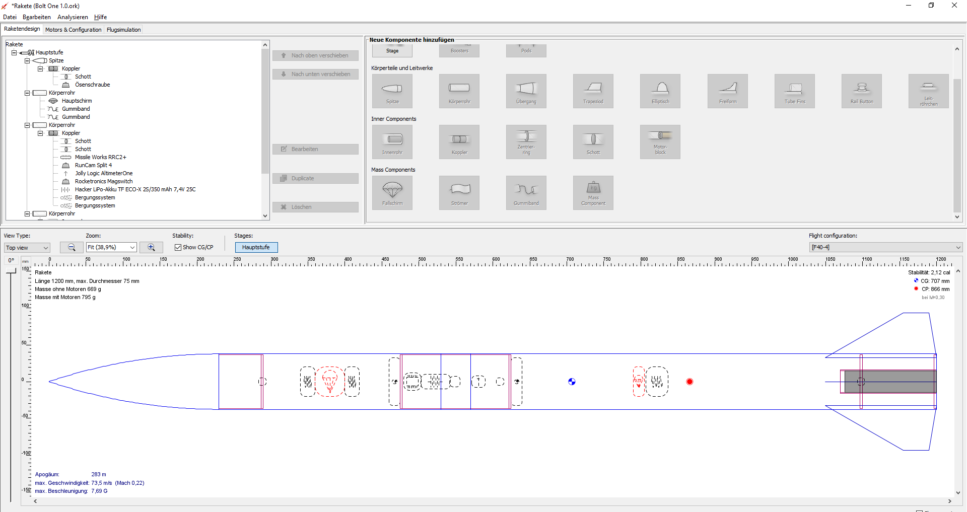 Die Planung mit der Open Rocket Software ist soweit fertig gestellt.