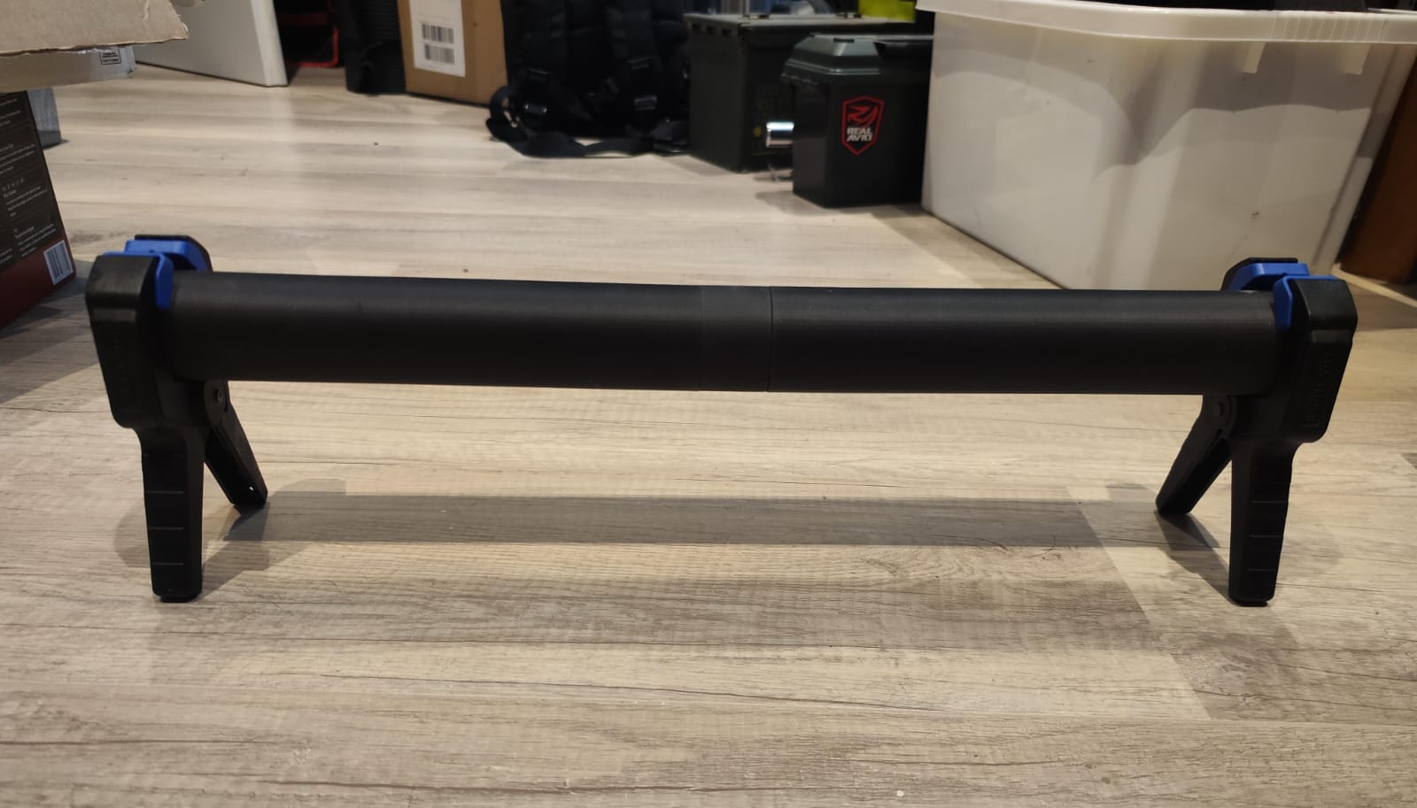 Heute habe ich endlich mal wieder etwas kurz Zeit gefunden und wollte die Durchbiegung verschiedener Materialien testen. Die Rohre hab ich schon vor längerer Zeit gedruckt gehabt, in der Mitte ist die Ebay aus dem jeweils gleichen Material. Aufbau: An den Enden habe die die Rohre mit einer Klammer "aufgebockt" und mittig mit einer 9kg (~90N) Hantel (war gerade da und ließ sich in der Mitte balancieren) belastet. Dabei die maximale Durchbiegung mit dem Messschieber gemessen: Auf den Bildern sieht man das geflogene PA-CF das bei Belastung eine maximale Durchbiegung von 15,6mm hatte. Im Vergleich: PA-CF: 15,6mm ASA: 4,4mm (mit dem Auge auf 55cm Gesamtlänge fast nicht sichtbar) PETG: 5,5mm