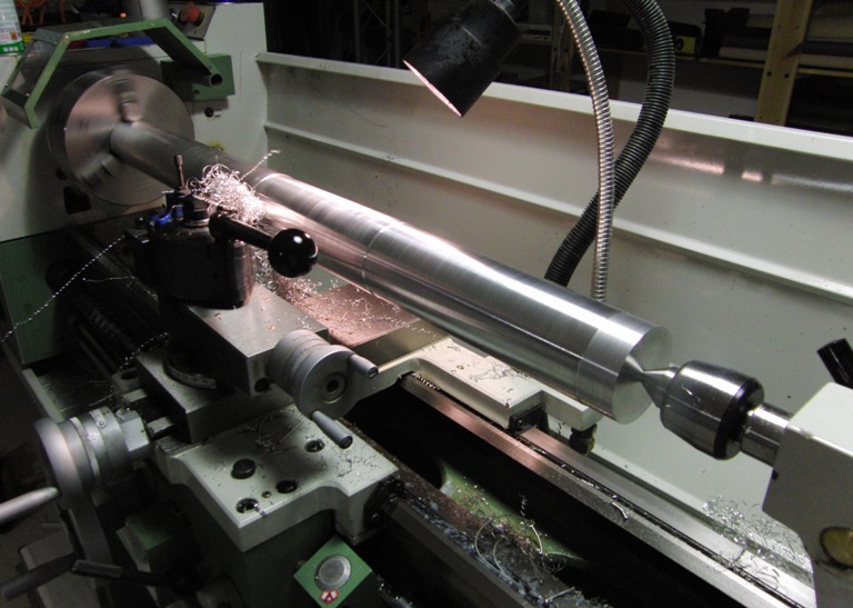 Mein Hobby... ...spanabhebende Metallbearbeitung... ...längs Auftrennen eines 76 mm Alu-Rohres...  ...Abdrehen von 70 mm auf 67 mm...