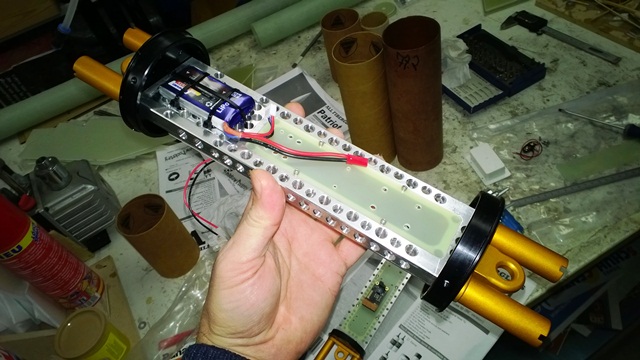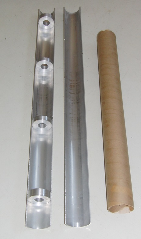 Zweiteiliger Wickelkern für PML-kompatible Rohre (3"):  Daneben das erste quick-and-dirty gewickelte Rohr (gummiertes Kraft-Papier mit Balsakern). Ein PML-Kuppler passt perfekt. Über das Material der Abstandshalter kann man noch nachdenken (PVC? PE? ...). Ebenso über die Dicke; die dünneren Teile in der Mitte neigen zum Verkanten. Den arrivierteren Forumisten mag sich jetzt der Gedanke "NOCH eine Methode, Rohre zu wickeln..." aufdrängen. Ohne Zweifel ist das so, aber m.E. ist das die Methode, die a) wenig Schweinerei verursacht (verglichen mit Wachs-beschichteten Rohren), b) wenig know-how und manuelle Geschicklichkeit erfordert und c) dabei maßhaltige Rohre liefert. Grüße, Hagen