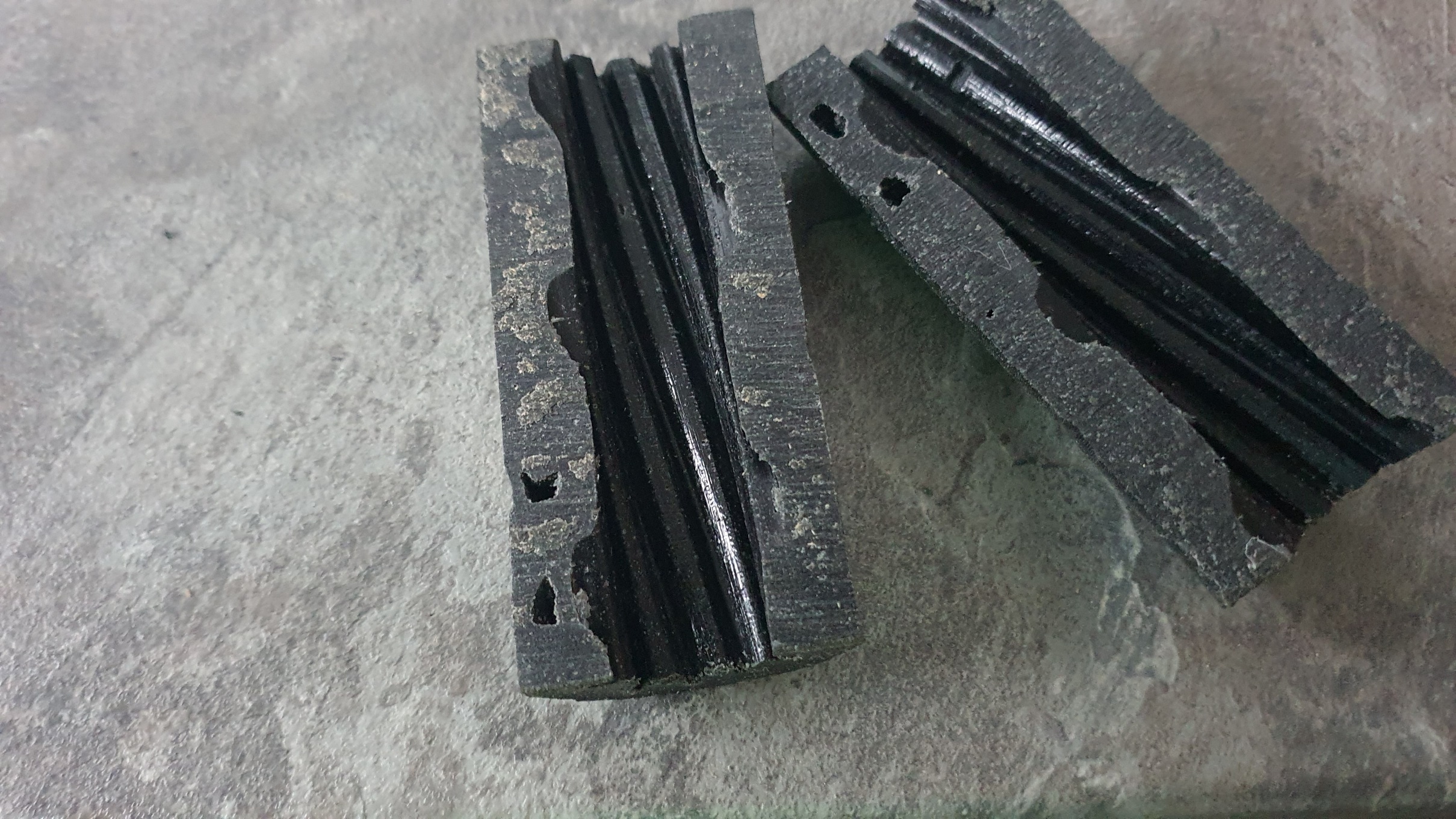 Und hier die zersägten Hälfte. Die Spirale ist klasse geworden. So hatte ich mir das gedacht.