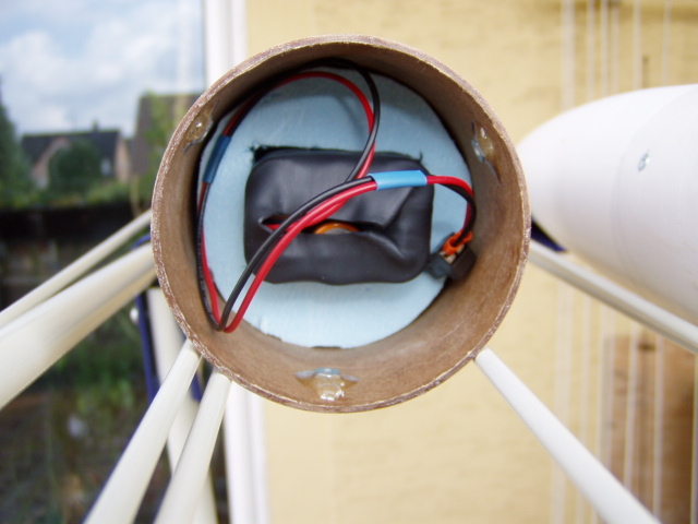 ganz oben in der Spitze die GPS-Antenne(quer fixiert). Und unten im Kuppler der Akku !!