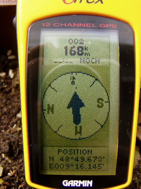 Also Koordinaten ins Hand-GPS eingegeben und los gings .....160 m bis zur Landestelle.