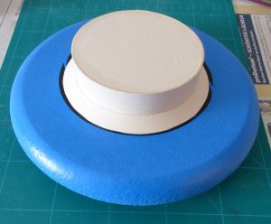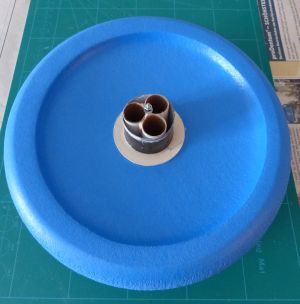 Dazu konnte ich im Internet eine Frisbee-Scheibe aus Schaumgummi finden. Die wiegt nur 40 g, die Standard-Frisbee-Scheibe wiegt dagegen 175 g. Das Schaumgummi ist mit einer dünnen Kunststofffolie überzogen. Mit dem Cutter wurde in der Mitte ein Loch ausgeschnitten so, dass das Motorrohr stramm eingeschoben werden kann. Da Lasten auf Klebungen auf die Kunststoffolie mit Vorsicht zu genießen sind, habe ich oben auf die Scheibe eine runde Schachtel geklebt, in die das Motorrohr von unten eingeschoben wird. Auf das Motorrohr wurde dann von unten eine Scheibe geklebt, so dass dazwischen das Schaumgummi liegt und die Last gut verteilt wird. Im Augenblick wiegt das 84 g. Wenn dann die bestellten Styroporkugeln eintreffen, geht es weiter. Gruß Achim Geändert von AchimO am 06. Juni 2018 um 18:31 Tracking https://www.dropbox.com/scl/fo/zap4uvchueg080w0az5og/AOOqAeAiN2aSaAEPhiusKyk?rlkey=cuvsp1db08mrwq20gqqbpicg2&dl=0 Altimeter https://www.dropbox.com/sh/jw1nenfd45mzee3/AABZKjSB-_9DA-pLaVlOti-9a?dl=0 Wer etwas braucht: E-Mail oder PM |