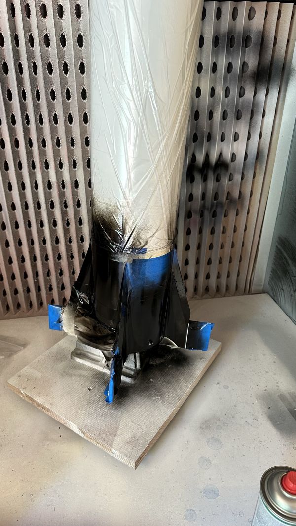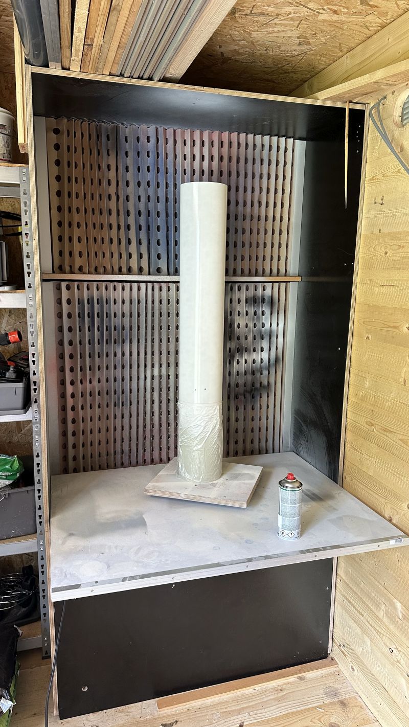 Heute war schön warmes Wetter, da habe ich mal meine alte Lackierbox reaktiviert, die ist letztes Jahr in unser neues Gartenhaus gezogen. Vorher hatte ich das Monstrum in der Garage, das ist jetzt weitaus besser. Der Abzug geht direkt nach draußen, man kann damit ohne Atemschutz lackieren.