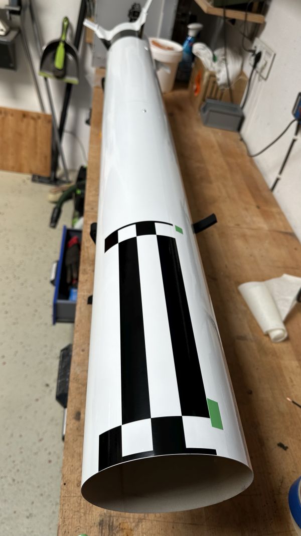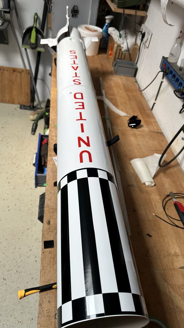 Den oberen Schwarz/Weißen Teil der Instrument Unit habe ich mit Folie gemacht, Lackieren geht bei den Karos kaum. Meine CNC-Fräse hat auch ein Schneidmesser, damit schneide ich Folien.