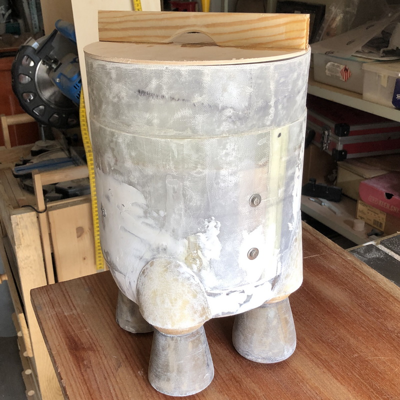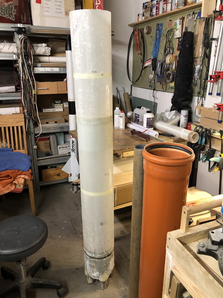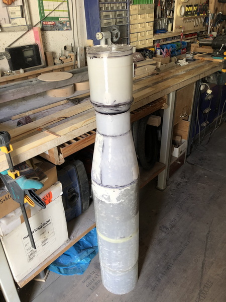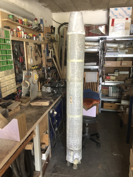 Das Service-Modul der Orionkapsel war einfach zu bauen. Ein Zylinder aus Zeichenkarton, verstärkt durch einen runden Spant auf den Stageadapter laminieren. Der Spant wird natürlich nach dem aushärten entfernt.