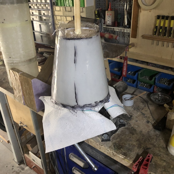 und dann wieder mit einigen Lagen Glasgewebe laminiert,