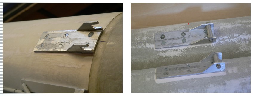 so hatte ich das beim Space Shuttle gemacht, links die Halterung am Haupttank und rechts an den Booster. natürlich mit Sheerpins gesichert. oben am Booster war die Absprengladung. Hat bei Tests gut funktioniert beim echten Flug hat sich nur ein Booster gelöst, hatte da wahrscheinlich zu wenig SP genommen. Die Sprengladung oben am Booster würde ich heute ganz anders dimensionieren und konstruieren. mal sehen... Rolli