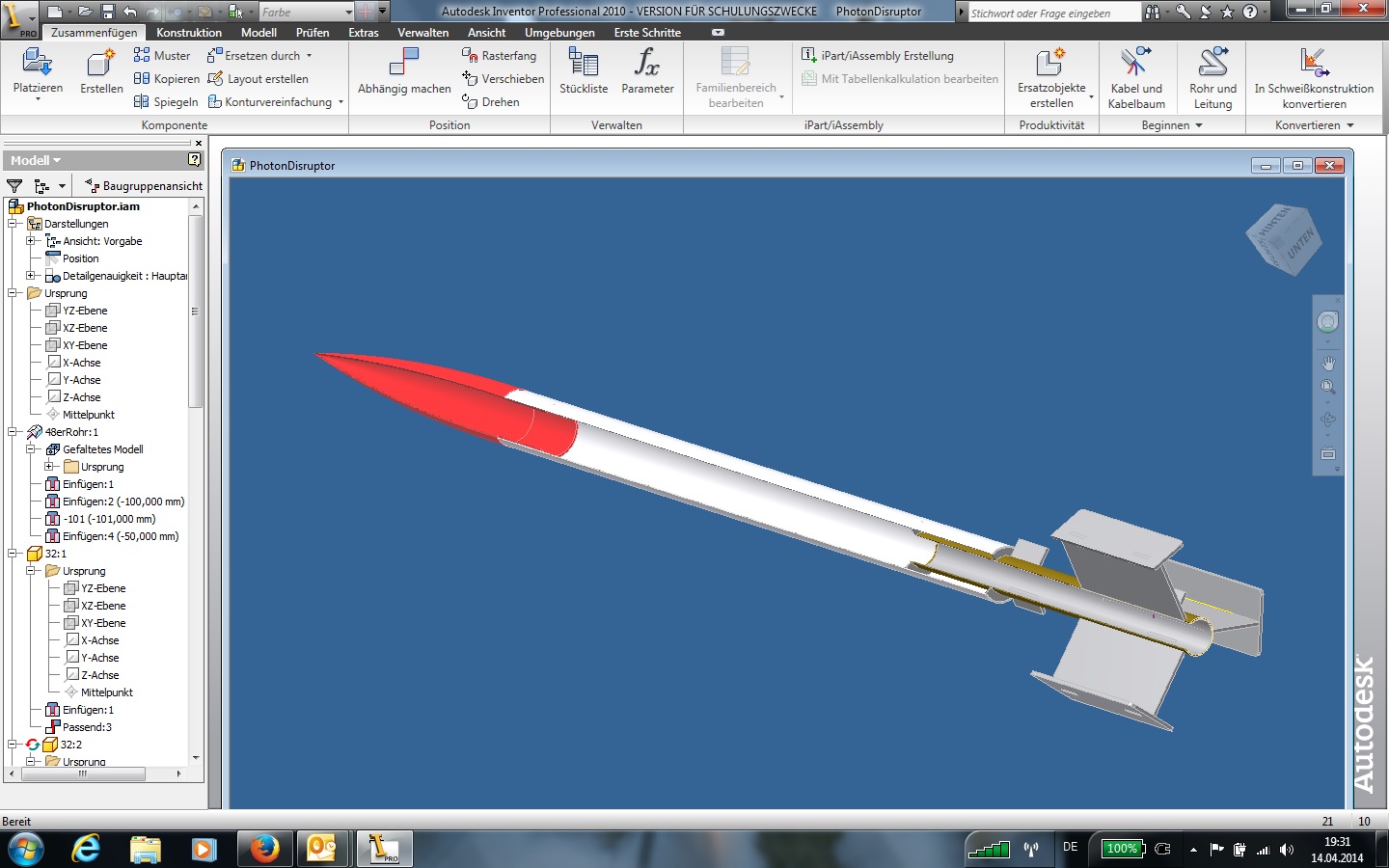 Mit Inventor arbeite ich auch oft, ist aber ein dickes Ding, das dauert eine Weile bis man damit arbeiten kann. Zum Raketenbauen nehme ich das aber nicht, ist dafür zu kompliziert, finde ich. Bis man die ganzen Teile zusammen hat ist man ganz schön lange am konstruieren.